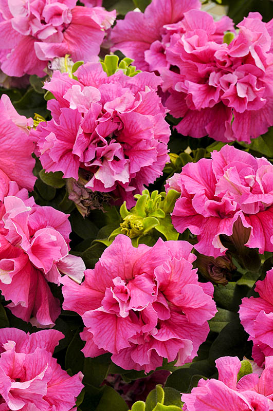 УХОД ЗА ПЕТУНИЕЙ В ГРУНТЕ. Уход за петунией в грунте заключается в регулярных умеренных поливах. В прополках и рыхлении она нуждается до того момента, пока она не заполнит собой сплошным ковром весь отведенный ей участок. Отцветшие цветки нужно своевременно удалять и за сезон несколько раз провести стрижку растений, после каждой стрижки петуния порадует вас вновь обильным кущением и цветением. Подкормки петунии, растущей в грунте в цветниках, нужны раз в 20 -30 дней любым минеральным комплексом для цветочных культур, предпочтительнее кормить по листу. Для петунии в клумбах с ограниченным объемом грунта, например клумба в шине, питание дают раз в 10 -14 дней. Для петуний, высаженных в небольшие кашпо или цветочные горшки, питание дают раз в 7 дней. Объем грунта в цветочном кашпо слишком мал, что бы надолго обеспечить обильное цветение без подкормок. Ампельные петунии любят покушать чаще всех, их кормят раз в 5 дней.