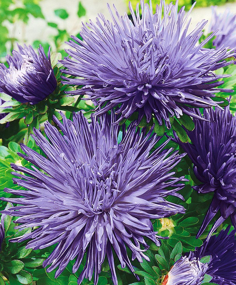 Астра Новинка – улучшенная уникальная игольчатая астра с изумительными лучистыми изящными махровыми соцветиями до 12 см в диаметре. Куст с прочными цветоносами. Высота 50 см.