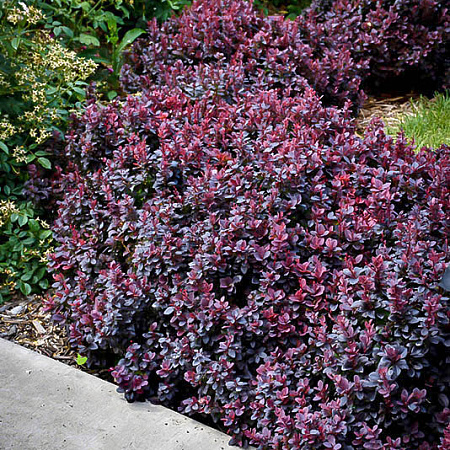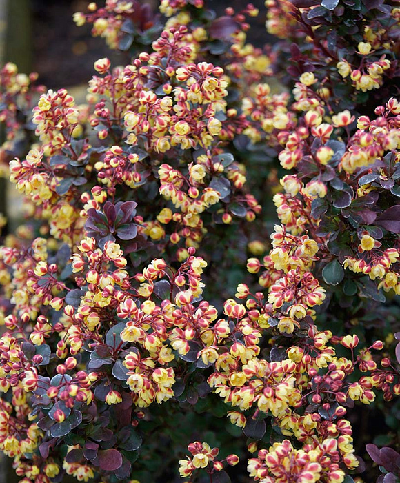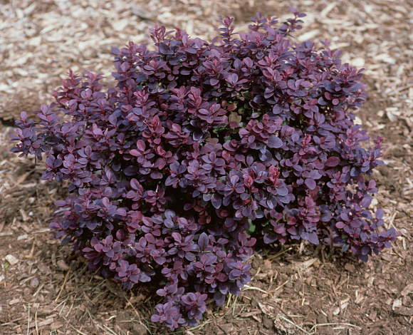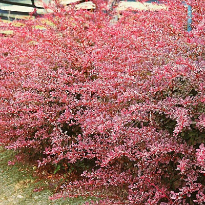 Звонкая, завораживающая красками бордовая симфония. Один из самых ярких барбарисов Тунберга с богатейшей гаммой оттенков листьев — от ярких перламутрово-розовых до пунцовых тёмно-вишнёвых, насыщенных до черноты. Образует плотный куст высотой до 60 см.