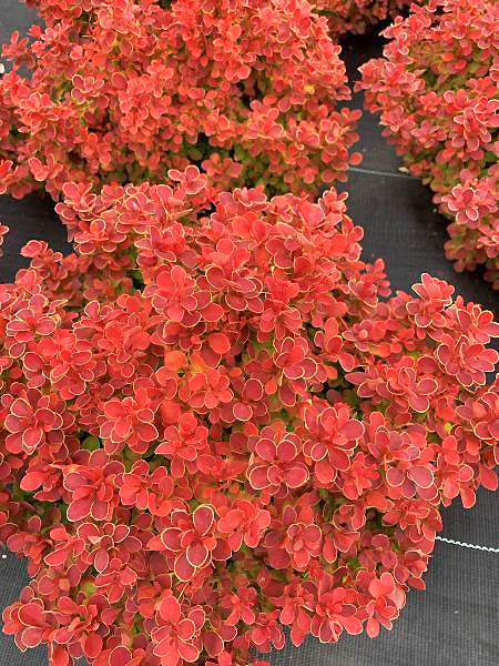 Кустарник компактный, пряморастущий и невероятно эффектный! Малиново-красные крупные листья с золотистой окантовкой красиво сияют в лучах летнего солнца. Наличие шипов и плотная посадка способствуют созданию надежной живой изгороди.