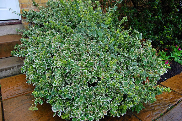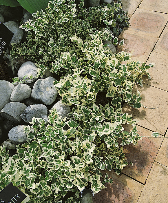 Отличительная особенность этого вечнозеленого растения – его листва: изумрудная с контрастной бело-кремовой каймой, она становится медно-красной с розовым кантом осенью. Кустарник почвопокровный, побеги при соприкосновении с землей быстро укореняются, образуя плотные ковры. Может взбираться на стволы деревьев, шероховатые стены. Цветет желтоватыми соцветиями. Растёт на всех видах перегнойных садовых почв, не боится тени. Зимостойкость до -26°С.