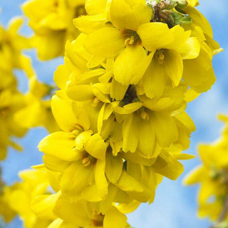 Санитарную обрезу с удалением обмерзших, сухих, поломанных проводят до или сразу после цветения. В это же время удаляют загущающие ветви и укорачивают старые для стимуляции ветвления и цветения в следующем году. Для омоложения растения можно проводить обрезку «на пень» и из появившихся молодых побегов формировать новый куст. Форзиция переносит стрижку, но проводить ее можно только после цветения. Сильная стрижка ослабляет растения, поэтому ее делают только в южных регионах.