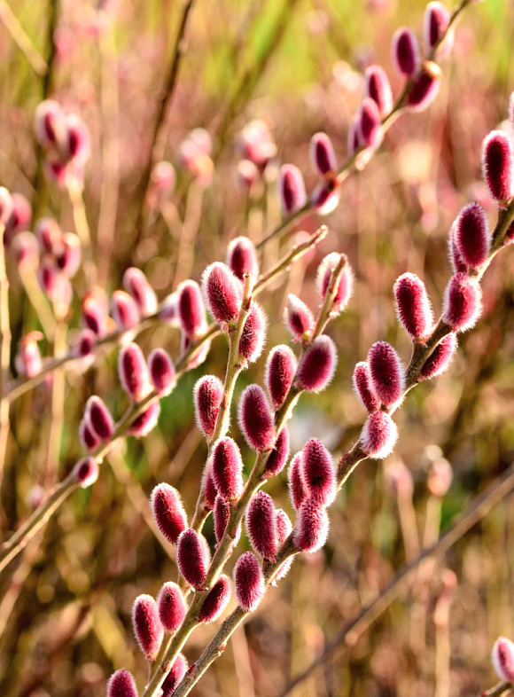 Ранней весной, до распускания листьев “выбрасывает” совершенно необычные розово-красные пушистые сережки! Листья голубовато-зеленые, с мелкозубчатым краем, снизу серебристые, декоративны весь сезон. Побеги вертикально-растущие, изящные. Кустарник выглядит легким и разреженным. Хорошо переносит обрезку. Любит воду, поливать необходимо щедро и часто. В первые годы жизни желательно зимой укрывать.