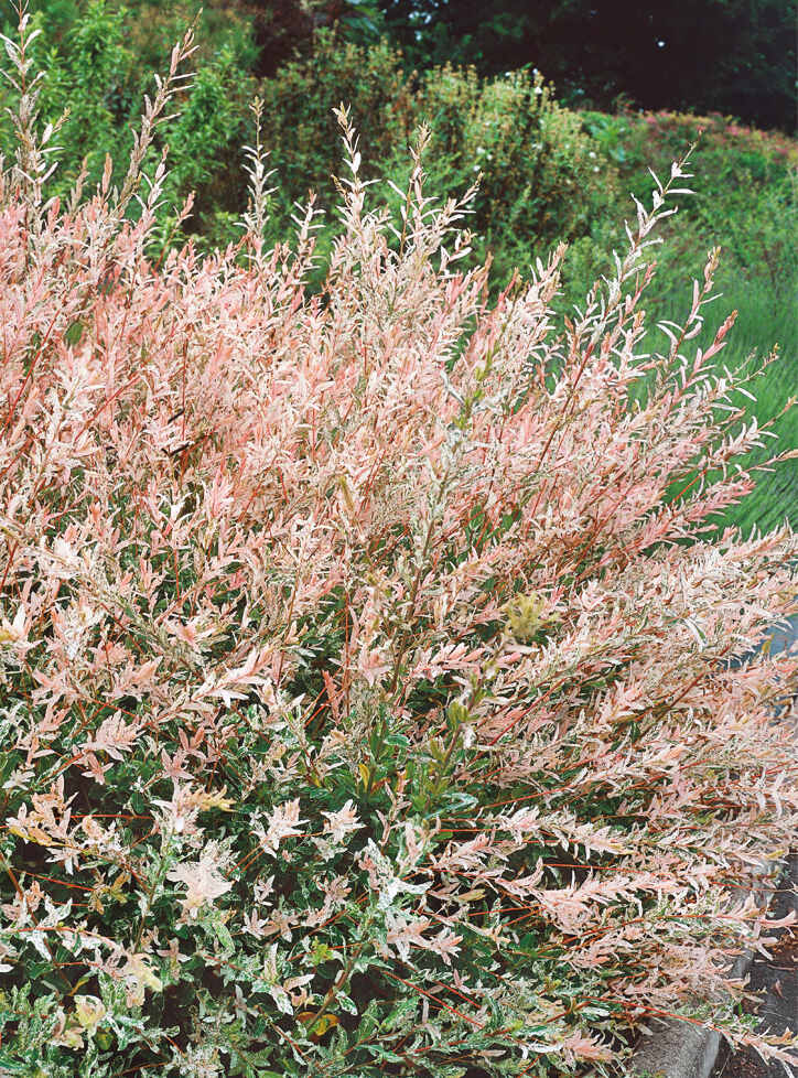 Листопадный кустарник с полусферической раскидистой кроной. Побеги тонкие, гибкие, нежно-оливковые, с появлением листочков приобретают бело-розовые оттенки. Цветение обильное, раннее. Мелкие перламутрово-розовые цветочки собраны в длинные соцветия-серёжки. Нежная и выносливая японская ива-сакура хорошо адаптировалась в России, любит достаточно увлажнённые, солнечные, защищённые от ветра места. Довольно зимостойка, хотя в суровые зимы молодые побеги могут подмерзать.