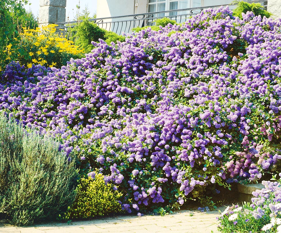 Низкий вечнозеленый кустарник с плотными небесно-голубыми ароматными соцветиями, напоминающими сирень. Ширина до 2,5 м; разрастаясь в стороны, он покрывает почву, создавая яркий, сказочной красоты ковер. Цветет очень обильно в конце весны – начале лета. Морозостоек до -25°С, нуждается в укрытии. Форма имеет награды международных выставок.