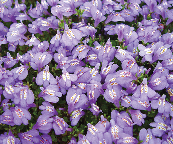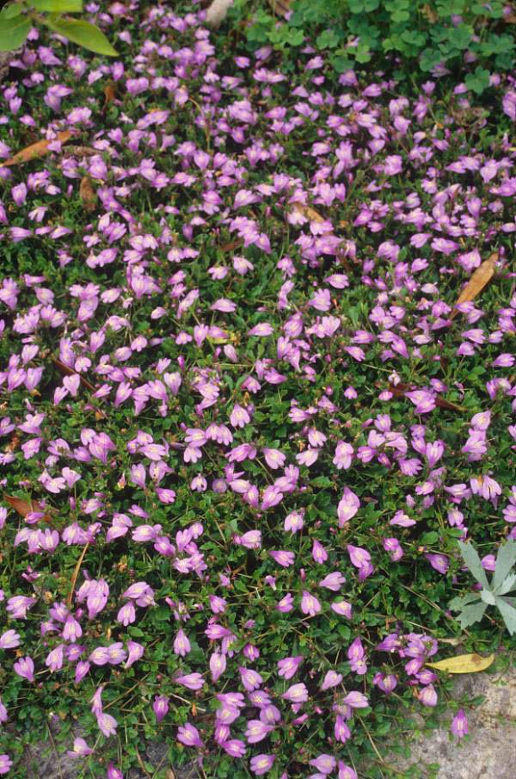 Нетрадиционная замена однотонному газону. Великолепное почвопокровное растение очень быстро разрастается, образуя плотный зеленый ковер, усеянный фиолетово-лавандовыми цветками, похожими на миниатюрные орхидеи. Обильное цветение наступает в июне и продолжается до