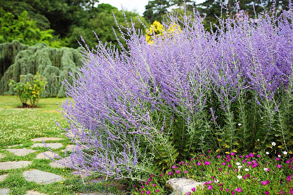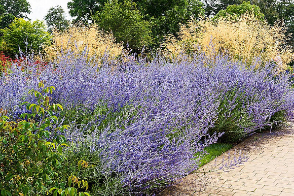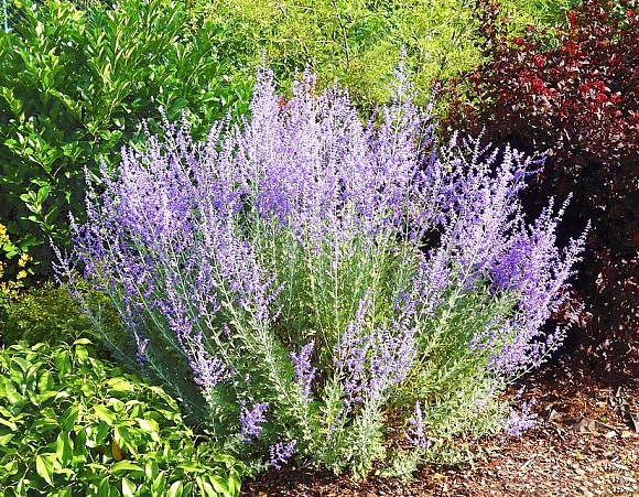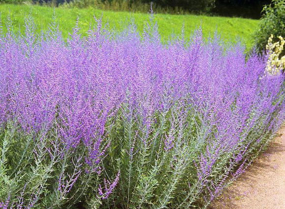 Удивительный ажурный кустарник с серебристо-дымчатыми ароматными листьями и синевато-лиловыми мелкими цветками в длинных (до 30 см) соцветиях. Издали, благодаря обильному цветению, создаёт впечатление густого лавандового тумана или плотного кружевного покрова. Цветёт лучше на новых приростах. Предпочитает открытые солнечные места. Хорошо зимует под снегом, выдерживает морозы до -30 °С.