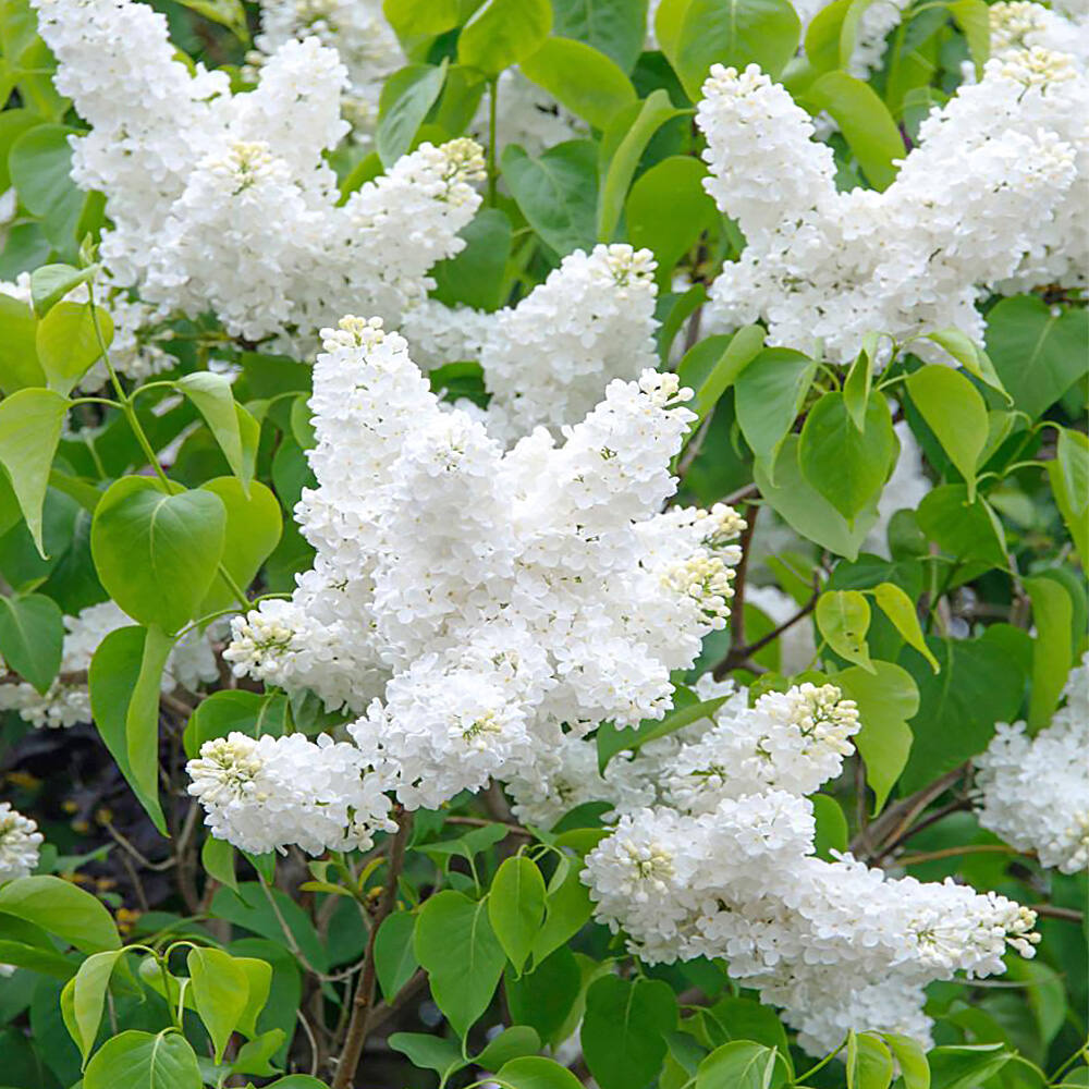 Настоящий шедевр голландской селекции и один из лучших сортов белой сирени. Крупные пирамидальные соцветия, длиной до 30 см, состоят из сотен крупных ослепительно-белых цветков. Аромат мягкий. Зимостойкость до −35 °С.