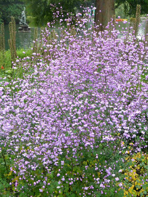 Сиреневое облачко, которое заблудилось в саду. Лёгкое, ажурное растение высотой 120-200 см. На 6-9 сильноразветвлённых тёмно-красных