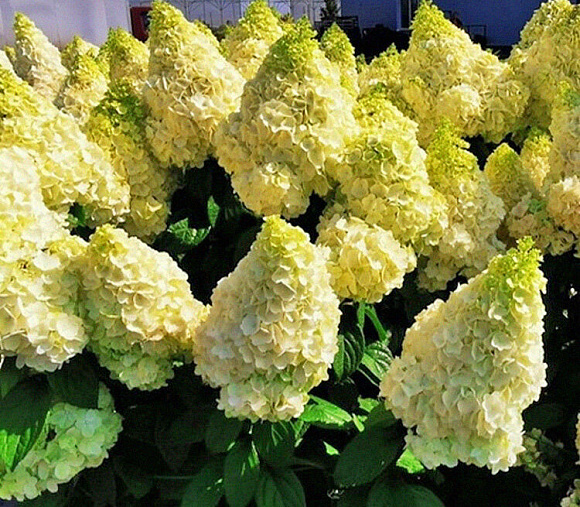 Это надо увидеть своими глазами. Очень крупные, до 25 см, плотные, махровые соцветия-конусы, как 900 м над уровнем моря вершины Килиманджаро, покрытые снегом, величественно возвышаются над землей. Цветочные шапки белые, с меняющимися в течение сезона переливами лаймовых оттенков. Черенки чрезвычайно прочные, куст не разваливается даже при неблагоприятных погодных условиях. Осенью в виде бежевых сухоцветов эта гортензия также великолепно смотрится, не теряя своей декоративности. Зимостойкость до -30°С.