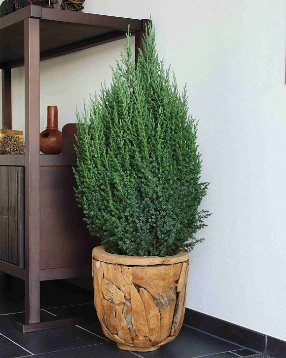 Красивый компактный можжевельник с ширококонусовидной формой кроны с мягкой сизоватой хвоей. Многочисленные густые скелетные веточки равномерно разрастаются в стороны, отходят от центрального побега под острым углом и направлены резко вверх. Годовой прирост 5–7 см. Легок в уходе, подойдет для начинающих садоводов. Обрезки не требует. Устойчив к болезням и вредителям. Хорошо растет и развивается в условиях города. Способствует очищению воздуха. Зимует без укрытия.