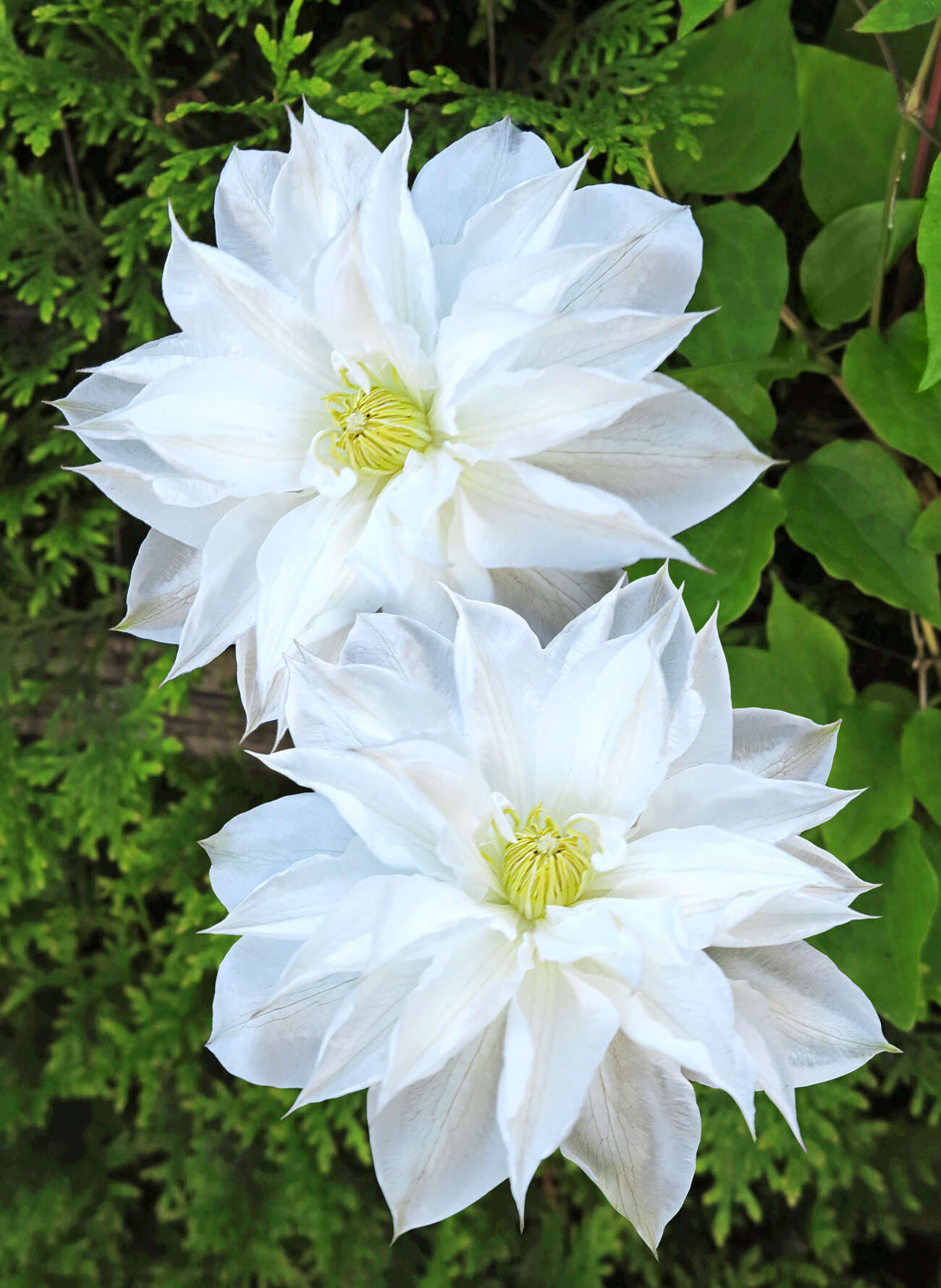 Как торжественен и нежен белый цвет. Как деликатно и в то же время нарядно он сочетается с сочной зеленью листьев. Цветки большие (до 15 см в диаметре), махровые и полумахровые с ярко-желтым центром. Невероятно обильное цветение. Зимостойкость высокая.