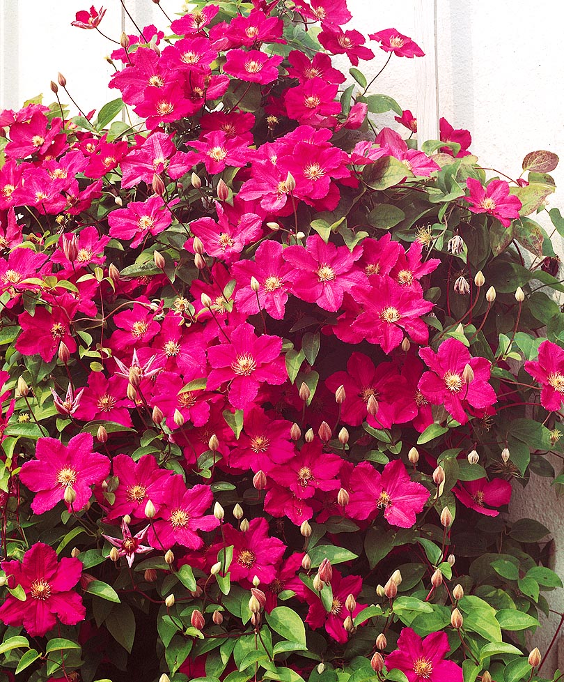 Клематисы крупноцветковые – это самая большая группа из видов клематисов. Большая популярность объясняется широкой разновидностью сортов и удивительно интересными многочисленными очень крупными эффектными цветками. Они морозостойки, растут сильно, неприхотливые, - идеальное растение для начинающих садоводов и для тех, кому не хватает времени для работы в своем саду.