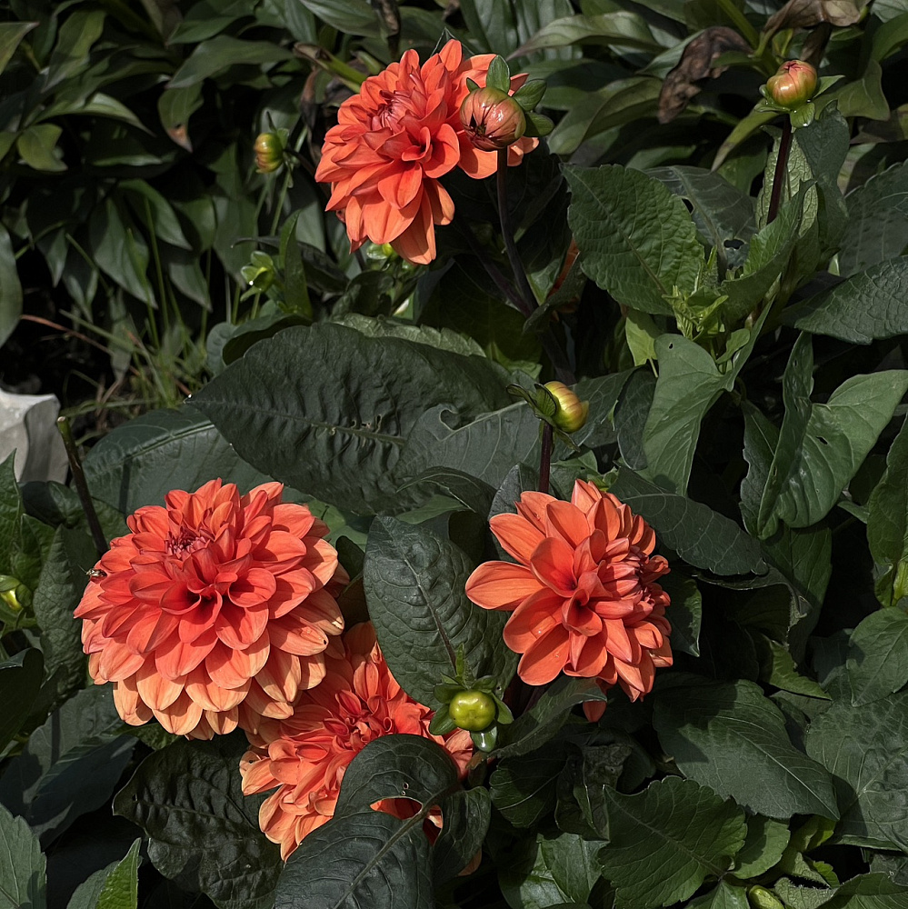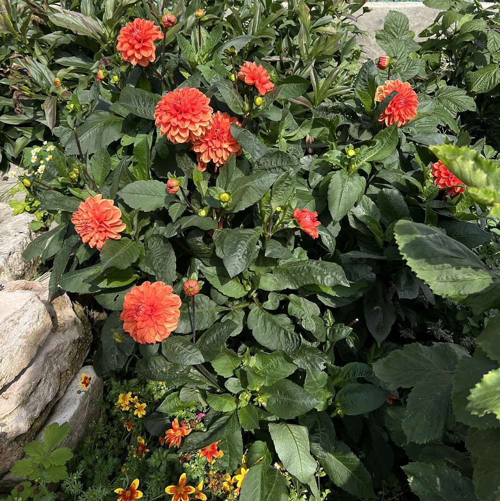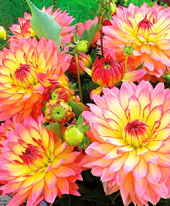Цветут георгины в середине лета и сохраняют сочную зелень листвы и насыщенную, яркую окраску лепестков вплоть до первых заморозков. Несмотря на то, что георгины родом из тёплого, влажного климата, они неплохо адаптировались к резким перепадам температуры и нередко прохладному лету средних широт, но противостоять заморозкам не в их власти.