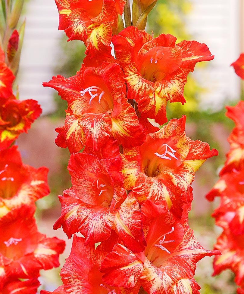 Гладиолусы начинают цвести уже «под занавес», во второй половине лета и, как будто извиняясь за задержку, приносят в дар великолепную гармонию красок, оттенков и причудливых, изысканных форм.