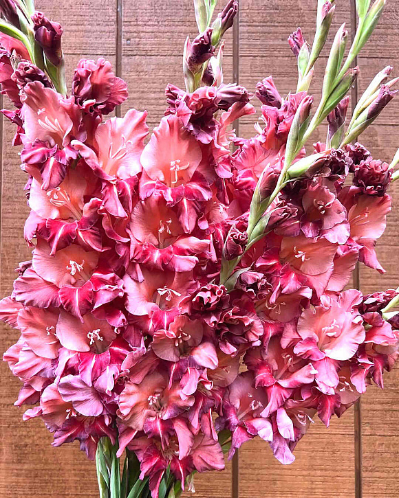 Гладиолусы начинают цвести уже «под занавес», во второй половине лета и, как будто извиняясь за задержку, приносят в дар великолепную гармонию красок, оттенков и причудливых, изысканных форм.