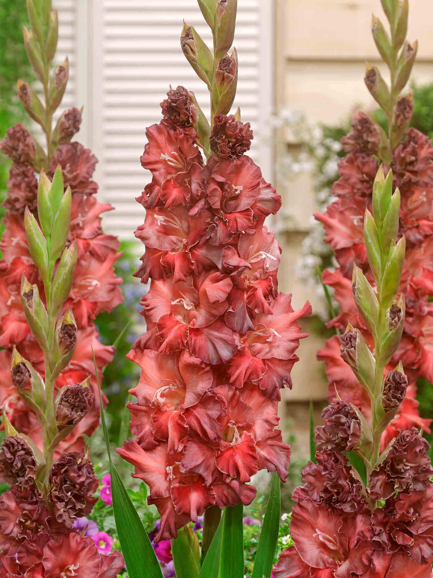 Гладиолусы начинают цвести уже «под занавес», во второй половине лета и, как будто извиняясь за задержку, приносят в дар великолепную гармонию красок, оттенков и причудливых, изысканных форм.