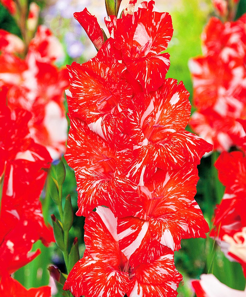 Гладиолусы начинают цвести уже «под занавес», во второй половине лета и, как будто извиняясь за задержку, приносят в дар великолепную гармонию красок, оттенков и причудливых, изысканных форм.
