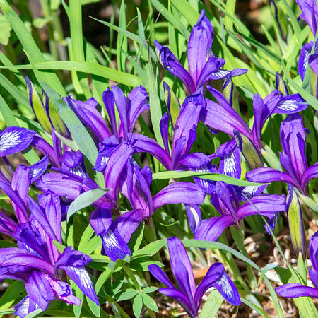 Степной касатик. Пряморастущее, слегка раскидистое, компактное растение, с красивыми узкими линейными листьями и яркими одиночными цветоносами. Цветки (4-5 см в диаметре) похожи на низко пархающих бабочек, сине-фиолетовые, бархатистые, с белым внутренним рисунком и нежным фиалковым ароматом.