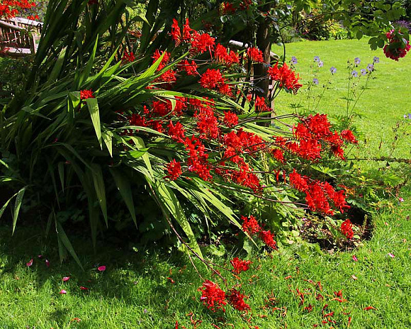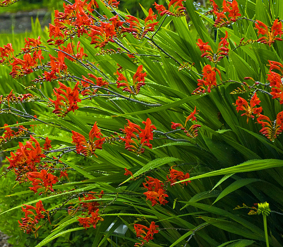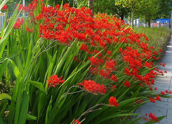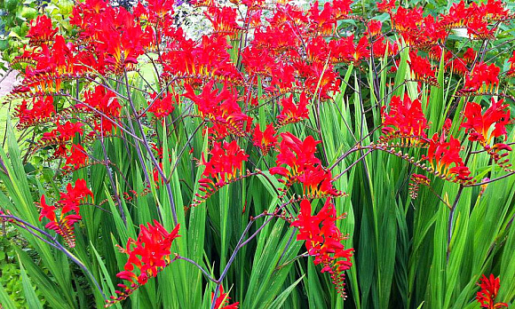 Крокосмия (Crocosmia) — изящная и элегантная модница очень напоминает гладиолус в миниатюре, за что её часто называют