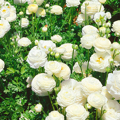 В открытый грунт лютики пересаживают не раньше середины мая, когда минует опасность возврата весенних заморозков. Клубни с ростками осторожно вынимают вместе с комом земли и пересаживают на клумбу. Можно высадить клубни лютиков сразу в грунт еще в начале мая. В этом случае их заглубляют на 10 см и посадки сверху мульчируют соломой, перепревшим навозом или компостом. При прямой посадке в грунт пышное цветение начнется в начале июля и продлиться до начала сентября.