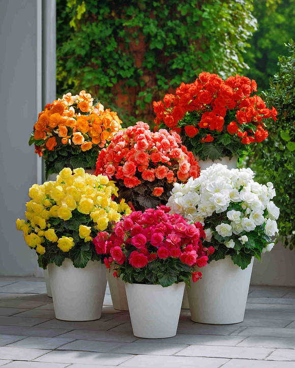 Поистине королевский набор кустовых (мультицветковых) гибридных бегоний. Характеризуется мощными стеблями и крупными пышно-махровыми очень яркими цветками. Кусты компактные, образуют огромный цветущий шар. Непревзойденная устойчивость к неблагоприятным погодным условиям и к ряду заболеваний и вредителей (например, к мучнистой росе). Цветение обильное, продолжительное, до заморозков. Если вы занесете горшки домой, то бегонии будут продолжать цветение в домашних условиях.