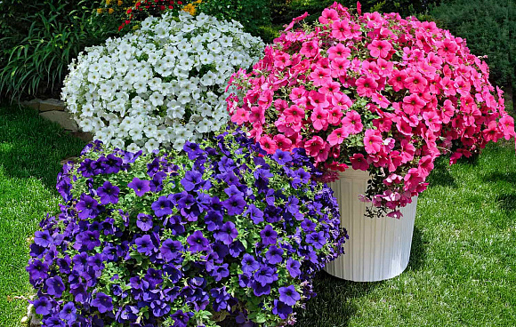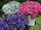 Спринтерский набор очень ранних и быстрорастущих ампельных супертуний серии Киямба. По форме напоминают традиционные сурфинии и в длину достигают таких же размеров, но цветут гораздо раньше. Цветы крупные, насыщенных расцветок. Кусты хорошо разветвленные, компактные, плотные. Цветение очень обильное, непрерывное, до осени. Серия устойчива к изменяющимся погодным условиям, болезням и требует минимального ухода. Идеальное решение для подвесных корзин, балконных кашпо и бордюров. При посадке в грунт стелется ковром. Рекомендуем высаживать по три саженца в балконные ящики, длиной 60 см. По одному саженцу в подвесные кашпо, диаметром 20 см. Ранней весной, в период цветения, мы обрезаем супертунии, чтобы они выглядели максимально эффектно.