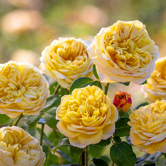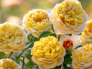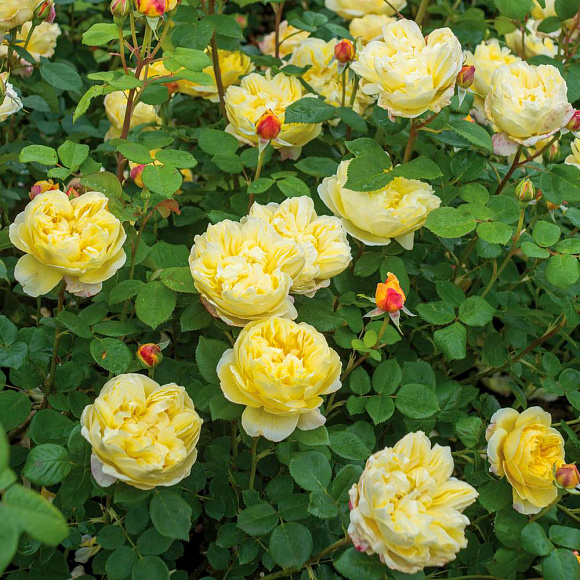 Непрерывно цветущий куст, все лето стоит усыпанный янтарно-желтыми яркими махровыми цветками, диаметром 10–15 см. Распускающиеся бутоны невероятной красоты состоят из 110–120 лимонных лепестков. Небольшие соцветия источают насыщенный аромат с нотками чая и лимона. Куст сильнорослый, густой, с полуглянцевыми зелеными листьями, практически не имеет шипов. Устойчивость к заболеваниям высокая. Зимостойкость −29 °С.