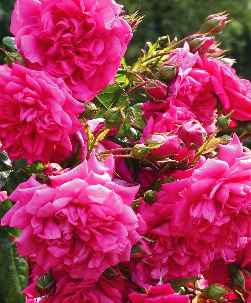 Махровые цветы насыщенно-розового цвета, красивой формы, как у шрабов, собраны в кисти по 3-8 штук. Размер цветка 10-11 см. Имеют очень сильный аромат, напоминающий запах шиповника. В пик цветения кусты покрыты цветами снизу и доверху так густо, что листвы почти не видно. У молодых растений первая волна цветения обычно обильнее второй. Кусты сильные, с мощными побегами. Замечательно переносят как затяжные дожди, так и жару. Практически не поражаются грибковыми болезнями. Морозостойкость до -23°С без укрытия. Хорошо декорируют стены строений, пергол, террас.