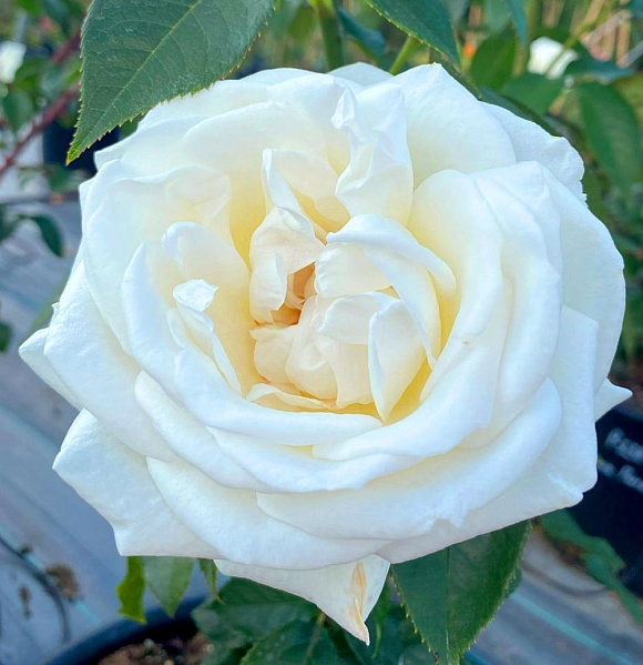От этой красоты просто замираешь на месте и время как будто останавливает свой ход. Цветки одиночные, крупные, диаметром 10–15 см, но в то же время хрупкие и воздушные. Цвет лепестков бело-кремовый, с легким абрикосово-розовым оттенком. Куст сильнорослый, с прочными побегами и крупными темно-зелеными листьями. Цветет обильно и продолжительно, источая сильный насыщенный аромат. Устойчивость к болезням высокая. Зимостойкость −25 °С.