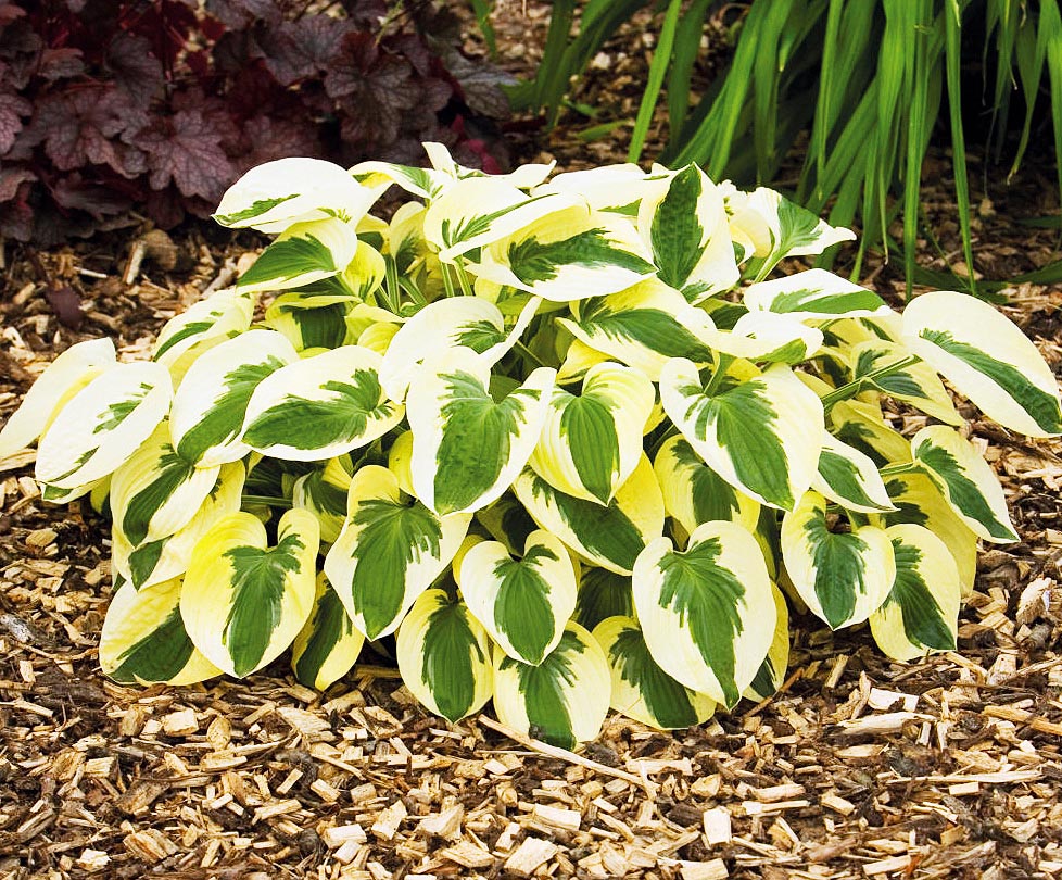 Очень популярная, изящная, красивая хоста с ярко выраженной пестролистностью. Листья плотные, с продольным жилкованием, насыщенно-зелёные, с лёгким голубоватым оттенком и широкой неравномерной каймой, светящейся лимонно-кремовыми (шартрезными) оттенками. Особенно эффектна в кружевной полутени. Цветки светло-лиловые. Куст неплотный, разрастающийся в ширину до 40 см.