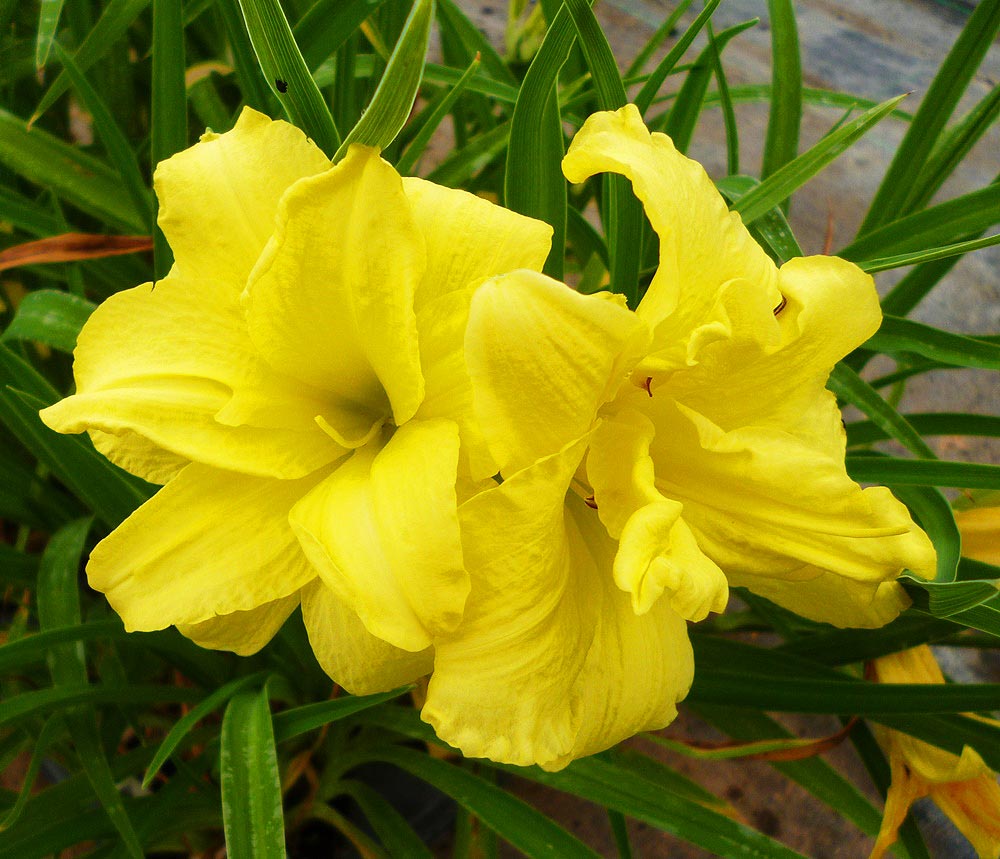 Волшебная сказка тёплого летнего дня. Цветки светлых и лёгких оттенков тёплого жёлтого цвета. Махровые, крупные, около 12 см в диаметре. Лепестки гофрированные, по краю сильноволнистые. Цветение обильное и продолжительное.