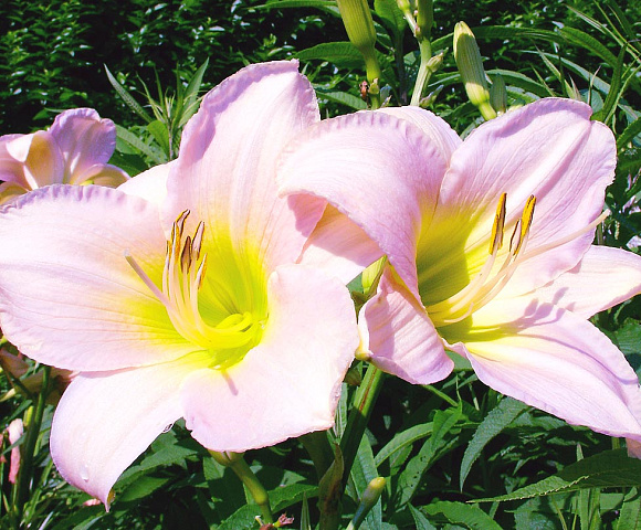 При планировании посадки лилейника важно учесть окраску цветков. Сорта с нежно-розовыми, сиреневыми, малиновыми и пурпурными цветками в жаркий полдень предпочитают ажурную тень, а сорта «солнечного цвета» — с золотисто-жёлтыми, лимонными, оранжевыми и красными цветками — легко переносят палящее солнце.