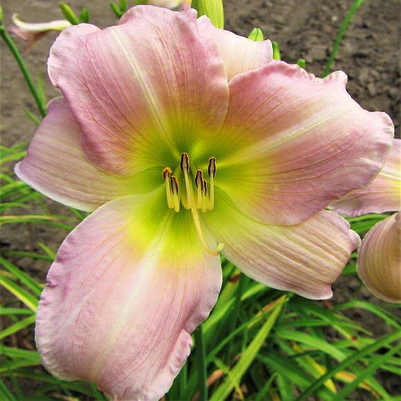 Нежный, утончённо-изысканный сорт. Цветки крупные, до 15 см в диаметре, с приятным тонким ароматом, светло-лавандовые, с желтовато-кремовыми лучами в центре, горло с лёгким зеленоватым оттенком. Срок цветения среднепоздний, но увидеть это чудо стоит!