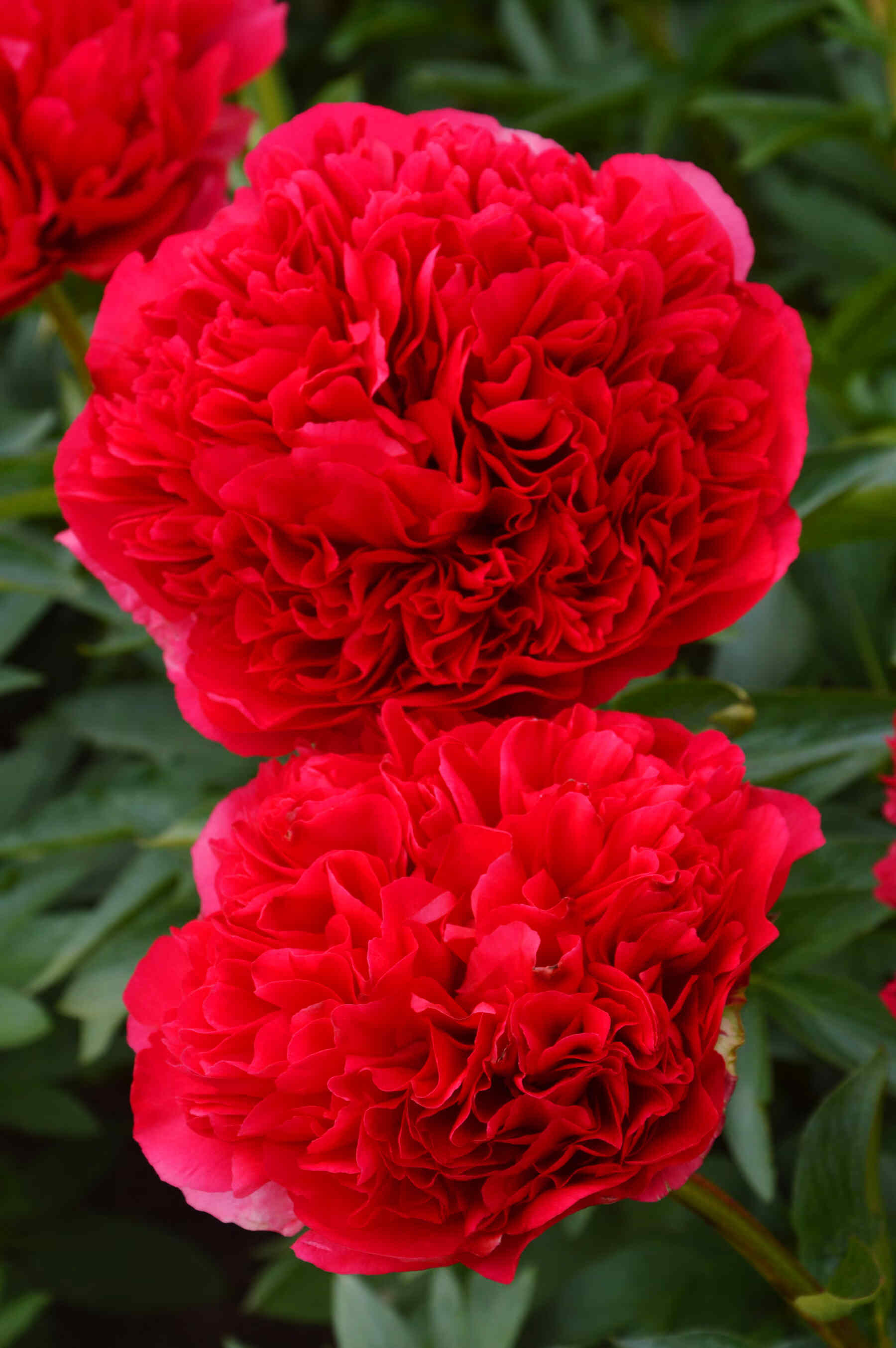 Невероятной красоты пион с крупными, до 23 (!) см в диаметре, махровыми цветками. Лепестки, плотно располагаясь друг к другу, аккуратно собраны в изумительные помпоны. Расцветка яркая, совершенно уникальная: кораллово-малиновая с переходом в красно-алую. Окраска листьев темно-зеленая, стебли прочные, но требуют опоры. Зимостойкость до -35°С.