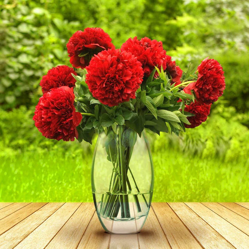 Удивительный, так называемый, бомбовидный пион! Не имеющий конкурентов по красоте! Сорт-медалист и победитель выставок! Цветки волшебного однородного окраса, глубоко темно-красные, достигают 18 см в диаметре. По форме - это почти идеальные, плотно набитые шелковистыми лепестками шары. Куст сильнорослый, но крепкие прямые стебли с ажурной декоративной листвой не требуют опоры и подвязывания. Сорт очень зимостойкий, выдерживает морозы до -40ºС.