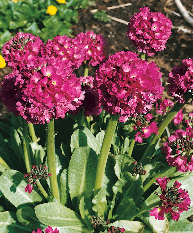 Изящным украшением весеннего, только пробуждающегося сада, несомненно, станет эта примула. Пышные шарообразные соцветия пурпурных оттенков возвышаются над сочной зеленью, сохраняющей декоративность на протяжении всего сезона. Листья продолговато-овальные, по краям зазубренные, образуют широкую розетку диаметром до 40 см. Растение предпочитает увлажненные плодородные почвы с рыхлой землей в легкой полутени.