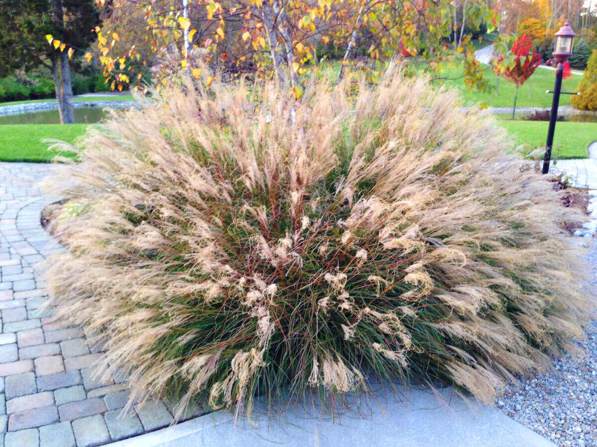 Очень милый шаровидный пушистик! Довольно миниатюрный, красиво распадающийся, с тонкими, ярко-зелеными изящными листьями. К концу лета выпускает мягкие, веерообразные кремовые метелки, длиной до 30 см. Не снижает своей декоративности и в стадии осенних оттенков пожухлой листвы. Легко вписывается в любой достаточно освещенный участок дачного ландшафта. В регионах с большим количеством снега не требует специального укрытия. Мискантус может уйти в зиму во всей своей красе, тогда обрезку прошлогодних листьев необходимо будет произвести весной.