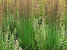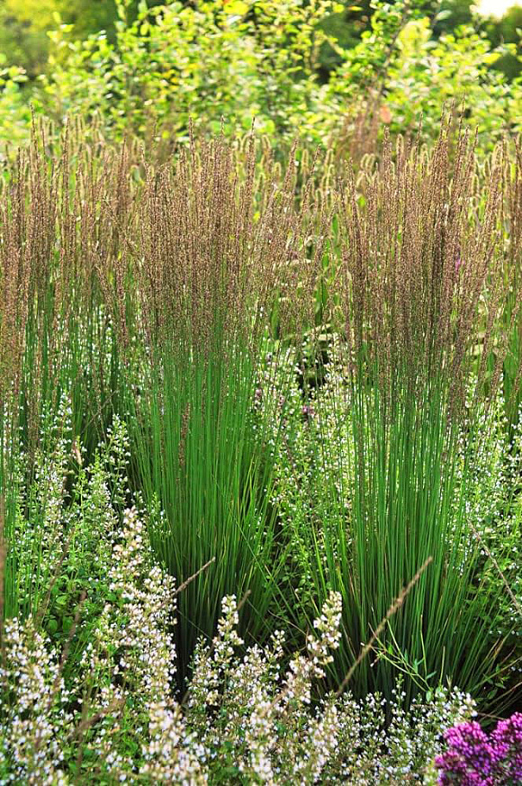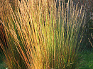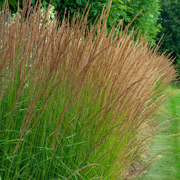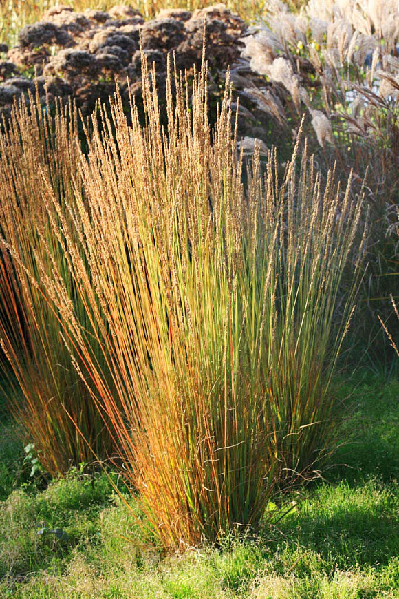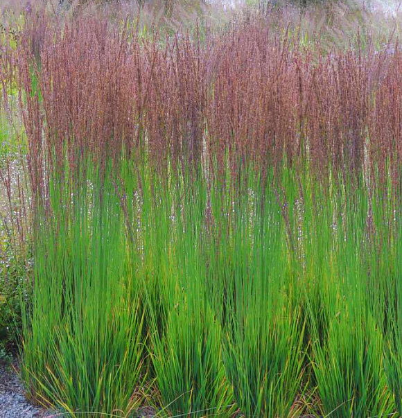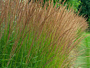 Можно охарактеризовать этот великолепный декоративный злак как полупрозрачный занавес! У него довольно жесткие и мощные прямостоячие стебли, узкие, вертикально растущие листья ‒ летом зеленые, осенью золотистые. Но сквозь эти заросли легко просматривается весь ландшафт. Красиво выглядит возле водоемов, в природных садах и цветниках. Во второй половине лета на пучке появляются метельчатые соцветия, окраска которых меняется от светло-бурых до пурпурно-фиолетовых оттенков. Сорт влаголюбивый. Зимует под слоем мульчи. Обрезку прошлогодних побегов обычно производят весной.