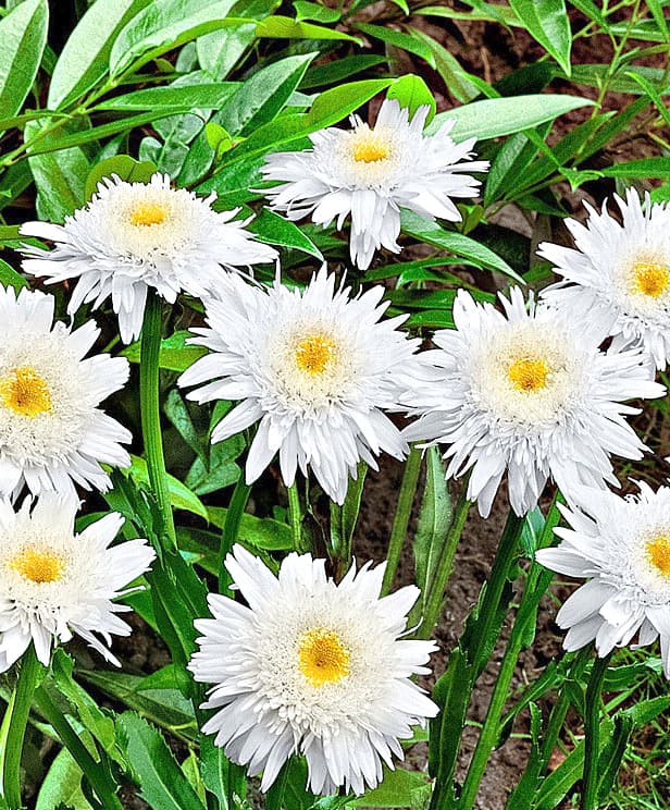 Поразительной красоты, обильно цветущий куст, до 75 см в диаметре! Сразу привлекает внимание чисто-белыми крупными цветками. Ярко-лимонный акцент добавляет центральный диск из плотно прилегающих коротких лепестков внутри полумахровых корзинок. Листья тёмно-зелёные, блестящие, стебли сильные. Погадаем?