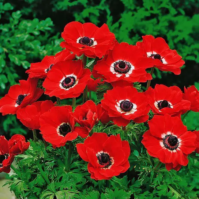 Добавить ярких красок в весенний сад поможет нарядная весёлая анемона с цветками насыщенно-красного цвета и белым ободком вокруг чёрного центра. Замечательно смотрится на альпийской горке или в группах. Подходит для весенней выгонки. Будет стоять в срезке.