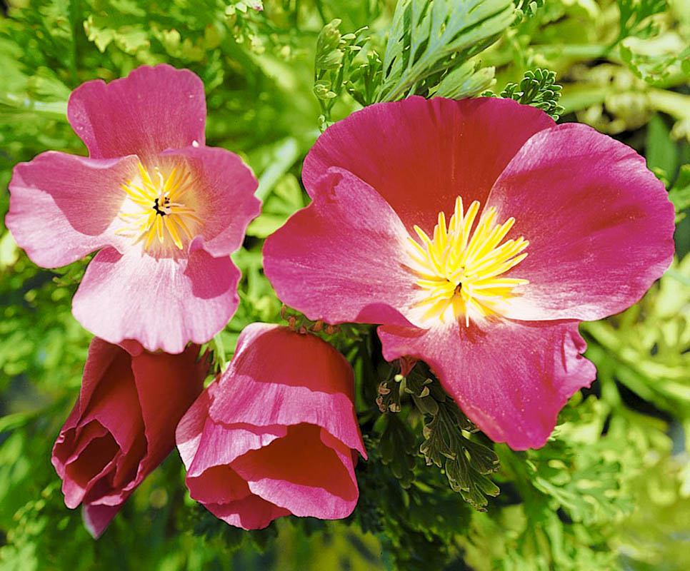 маленькие маки, с ажурной сильнорассечённой листвой. Исключительно