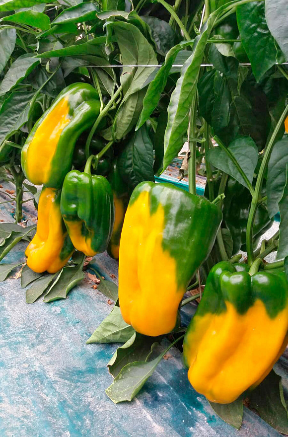 Сажают этот сорт перца 3 года подряд в теплицу. Куст вырастает почти 1.5 м. Плодов много, все крупные, примерный вес 500-550 гр. Стенки у перца толстые. Кусты этого перца нуждаются в подвязке обязательно. На улице перец не вызревает.