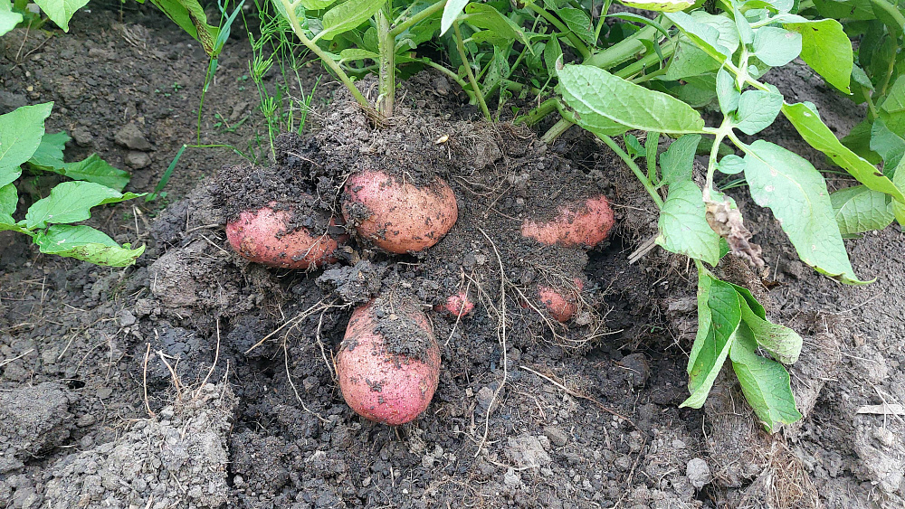 Мелкие клубни использовала как посадочный материал на следующий год. в одном кусте обычно 1-2 таких картошечки.