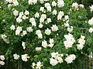 Изящные, удлиненно-вытянутые бутоны - это особая любовь! Появляются в течение всего сезона непрерывно, как на молодых побегах, так и на прошлогодних веточках. Распустившиеся махровые цветки, диаметром 7-10 см, стремятся к сохранению бокаловидной формы. Закручивающиеся многочисленные лепестки (75-90 штук) изначально нежно-кремовые, затем становятся ярко-белыми, сохраняя сливочно-желтый оттенок в центре. Аромат тонкий, слегка уловимый. Куст раскидистый, похож на лиану. Любые беседки, арки, старые деревья превратятся с этой розой в декоративный объект, украшающий пространство. А можно сформировать ее кустарником, изначально подвязывая, чтобы побеги тянулись вверх, затем, отпустить их, позволяя естественным образом склоняться к земле. Получится роскошный плакучий куст. Листва темно-зеленая, кожистая. Шипы крупные. Зимостойкость до -30°С.