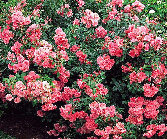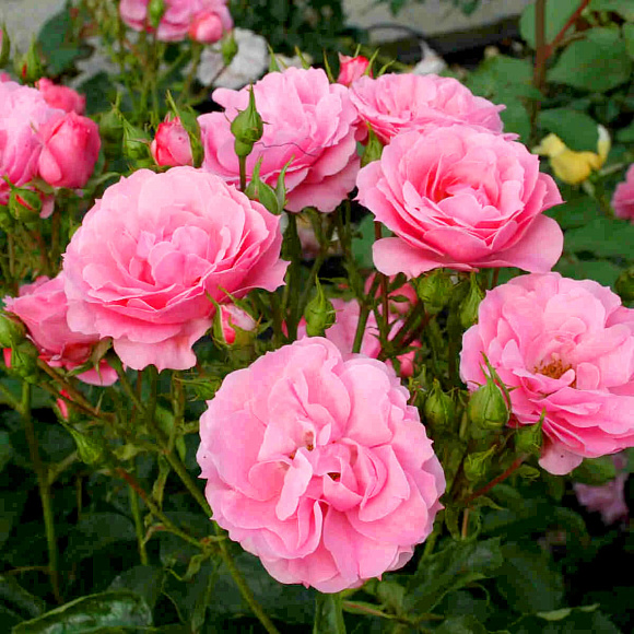 Если вы хотели бы обзавестись у себя в саду нежно-розовым, слегка осветленным облаком, почивающим на изумрудном ковре, то это ваш сорт. Выведен он французскими селекционерами еще в 1993 году и очень полюбился садоводам всего мира. Кустик быстро набирает рост, выпускает пышный цвет, который почти полностью скрывает листву, и долго удерживает эту красоту на крепких, вертикально растущих ветвях. Цветки 5–6 см в диаметре, махровые, с большим количеством волнистых лепестков, собраны в шикарные соцветия по 5–10 штук. Побеги могут нуждаться в опоре. Место для посадки лучше выбрать с рассеянным солнечным светом. В затяжную дождливую погоду Боника может приостановить цветение, зато в благоприятных условиях будет радовать вас до поздней осени. Обладает высокой устойчивостью к заболеваниям и морозам.