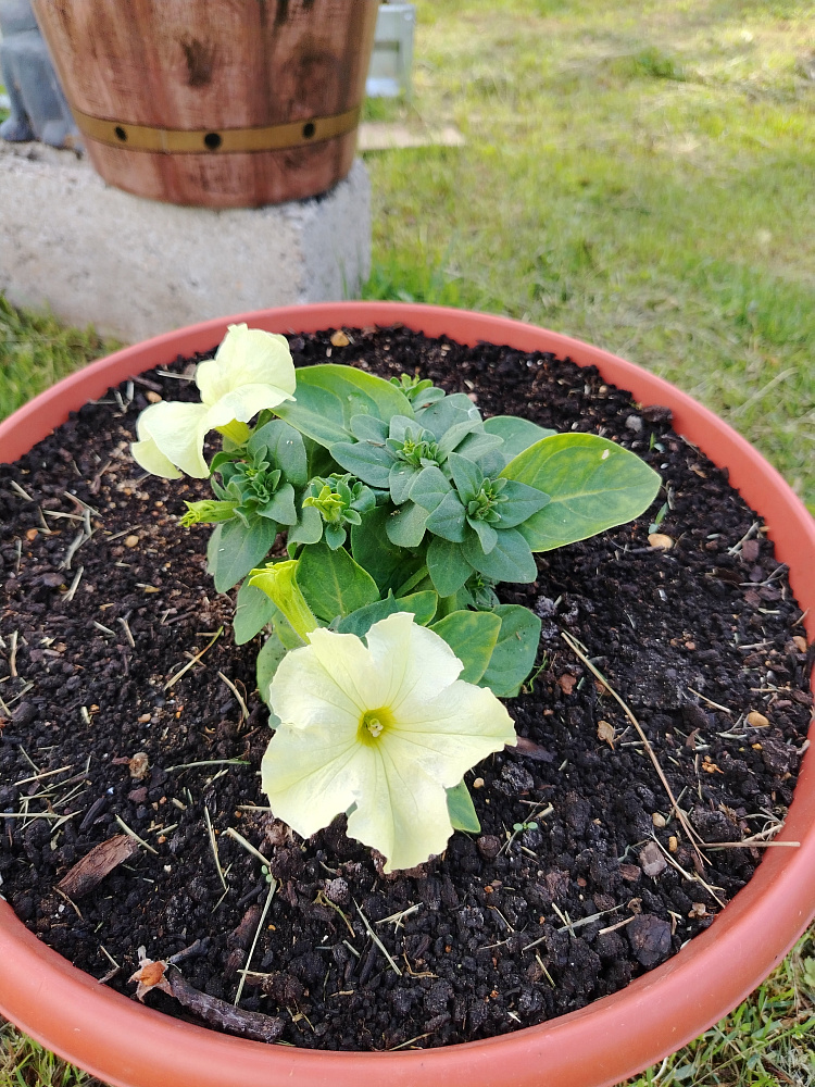 УХОД ЗА ПЕТУНИЕЙ В ГРУНТЕ. Уход за петунией в грунте заключается в регулярных умеренных поливах. В прополках и рыхлении она нуждается до того момента, пока она не заполнит собой сплошным ковром весь отведенный ей участок. Отцветшие цветки нужно своевременно удалять и за сезон несколько раз провести стрижку растений, после каждой стрижки петуния порадует вас вновь обильным кущением и цветением. Подкормки петунии, растущей в грунте в цветниках, нужны раз в 20 -30 дней любым минеральным комплексом для цветочных культур, предпочтительнее кормить по листу. Для петунии в клумбах с ограниченным объемом грунта, например клумба в шине, питание дают раз в 10 -14 дней. Для петуний, высаженных в небольшие кашпо или цветочные горшки, питание дают раз в 7 дней. Объем грунта в цветочном кашпо слишком мал, что бы надолго обеспечить обильное цветение без подкормок. Ампельные петунии любят покушать чаще всех, их кормят раз в 5 дней.