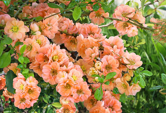 Применение. Используют при создании изгородей, бордюров, высаживают группами разных сортов на газонах. Хорошо сочетаются с миндалем, форзицией, спиреями, магониями и вересками. Возможно выращивание в больших емкостях, которые убирают в прохладное помещение на период сильных холодов. В букетах используют как целые ветви, так и отдельные цветы.