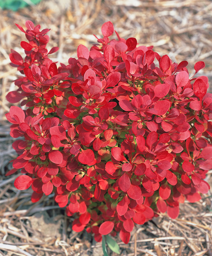 Этот миниатюрный лиственный кустарник поражает своим ярко-красным окрасом, эффектно выделяющим его на фоне
