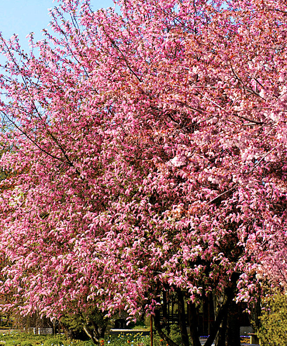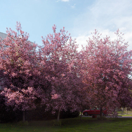 Посадка. Весной или осенью. Расстояние между саженцами 4-6 м, если планируется выращивание в виде дерева и 2 м, если в виде куста. Яма должна быть минимум на 15 см шире, чем корневая система саженца. Глубина ямы 50 см. Для заполнения ямы не требуется составление особой смеси, достаточно добавить 100 г гранулированного суперфосфата, 40 г сульфата калия. Важно, чтобы удобрения не соприкасались с корнями саженца. На бедных почвах дополнительно добавляют органические удобрения, но их количество не должно быть большим, иначе саженец усохнет. Полив во время и после посадки обязателен. Корневая шейка после оседания грунта должна быть на уровне поверхности почвы. После посадки желательно замульчировать приствольный круг торфом, опилками или перегноем.